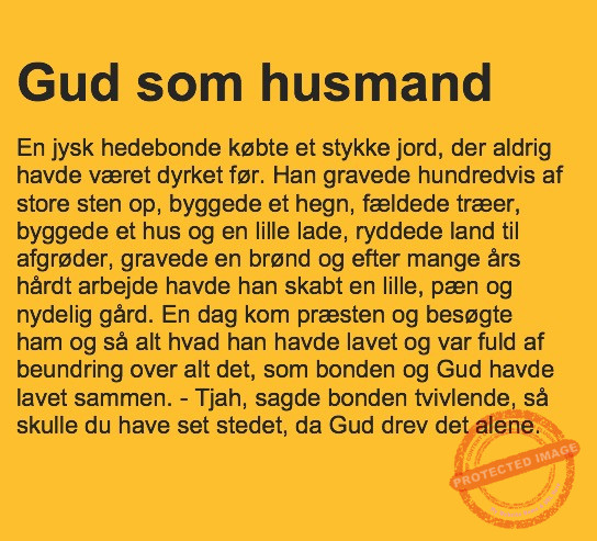 Gud som husmand Share on Facebook Tweet on Twitter tweet gudsomhusmand33 SCROLL NED FOR FLERE SJOVE JOKES! :) RELATED ARTICLESMORE FROM AUTHOR Vittigheder Lille Michael og boliglĂĄnet… Vittigheder Lille Michael ønskede sig en cykel i fødselsdagsgave, men forældrene mente ikke der var penge til det… Vittigheder Peter som ikke var helt sĂĄ kvik skulle ned og købe kondomer for første gang da han havde fĂĄet en kæreste… Vittigheder Lille Lasse havde bandet ved aftensbordet og nu mente hans far han skulle have en røvfuld.. Vittigheder Telefonen ringer hos narkopolitiet… Jeg vil gerne anmeldelse min nabo…. Vittigheder Den mest usandsynlige dartspiller gĂĄr ind pĂĄ et værtshus Vittigheder En mand gĂĄr til lægen, fordi han har et problem med, at han prutter konstant…… Vittigheder En kvinde havde en affære med sin mands ven… Vittigheder En lykkelig gift kvinde ville teste sin mands loyalitet og lavede en test til ham… Vittigheder En mand er ude for at købe en ny papegøje og finder en dyrehandel som har 3 forskellige.. Vittigheder En mand gĂĄr ind til lægen og siger: “Doktor, jeg tror, jeg er blevet en hund!”…. Vittigheder To venner sidder pĂĄ en bar og snakker om deres forhold…