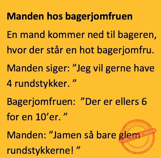 Manden hos bagerjomfruen Share on Facebook Tweet on Twitter tweet SCROLL NED FOR FLERE SJOVE JOKES! :) RELATED ARTICLESMORE FROM AUTHOR Vittigheder Lille Michael og boliglĂĄnet… Vittigheder Lille Michael ønskede sig en cykel i fødselsdagsgave, men forældrene mente ikke der var penge til det… Vittigheder Peter som ikke var helt sĂĄ kvik skulle ned og købe kondomer for første gang da han havde fĂĄet en kæreste… Vittigheder Lille Lasse havde bandet ved aftensbordet og nu mente hans far han skulle have en røvfuld.. Vittigheder Telefonen ringer hos narkopolitiet… Jeg vil gerne anmeldelse min nabo…. Vittigheder Den mest usandsynlige dartspiller gĂĄr ind pĂĄ et værtshus Vittigheder En mand gĂĄr til lægen, fordi han har et problem med, at han prutter konstant…… Vittigheder En kvinde havde en affære med sin mands ven… Vittigheder En lykkelig gift kvinde ville teste sin mands loyalitet og lavede en test til ham… Vittigheder En mand er ude for at købe en ny papegøje og finder en dyrehandel som har 3 forskellige.. Vittigheder En mand gĂĄr ind til lægen og siger: “Doktor, jeg tror, jeg er blevet en hund!”…. Vittigheder To venner sidder pĂĄ en bar og snakker om deres forhold…