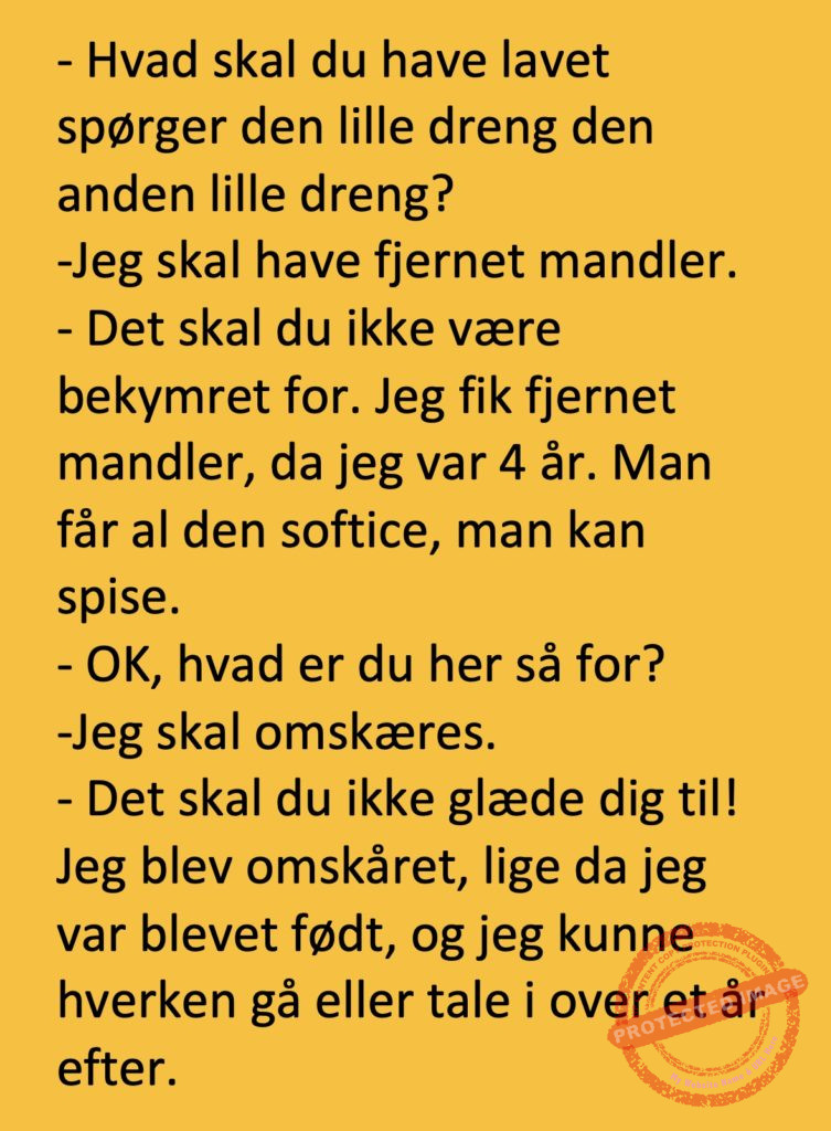 To små drenge var ved lægen Share on Facebook Tweet on Twitter tweet SCROLL NED FOR FLERE SJOVE JOKES! :) RELATED ARTICLESMORE FROM AUTHOR Vittigheder Lille Michael og boliglånet… Vittigheder Lille Michael ønskede sig en cykel i fødselsdagsgave, men forældrene mente ikke der var penge til det… Vittigheder Peter som ikke var helt så kvik skulle ned og købe kondomer for første gang da han havde fået en kæreste… Vittigheder Lille Lasse havde bandet ved aftensbordet og nu mente hans far han skulle have en røvfuld.. Vittigheder Telefonen ringer hos narkopolitiet… Jeg vil gerne anmeldelse min nabo…. Vittigheder Den mest usandsynlige dartspiller går ind på et værtshus Vittigheder En mand går til lægen, fordi han har et problem med, at han prutter konstant…… Vittigheder En kvinde havde en affære med sin mands ven… Vittigheder En lykkelig gift kvinde ville teste sin mands loyalitet og lavede en test til ham… Vittigheder En mand er ude for at købe en ny papegøje og finder en dyrehandel som har 3 forskellige.. Vittigheder En mand går ind til lægen og siger: “Doktor, jeg tror, jeg er blevet en hund!”…. Vittigheder To venner sidder på en bar og snakker om deres forhold…